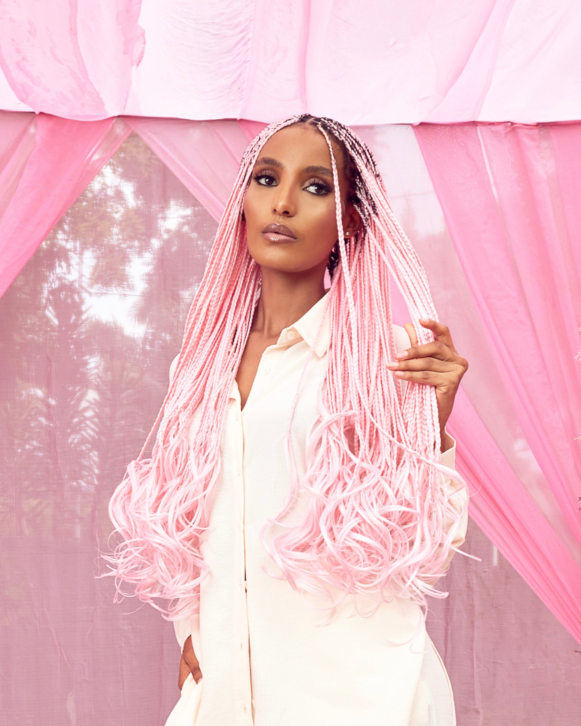 - Model used 5 packs of hair